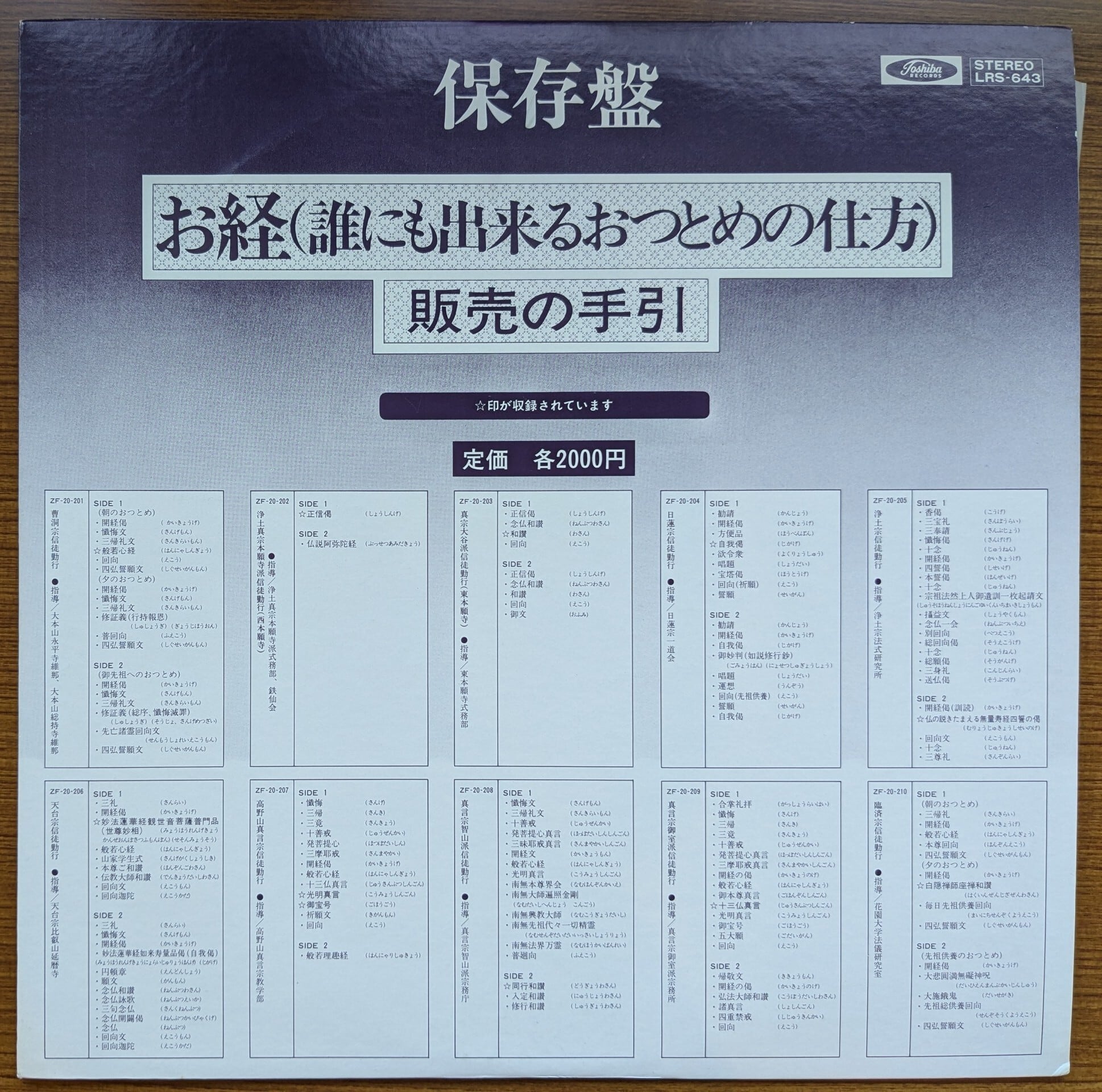 販売の手引き 各宗派のお経LPシリーズから抜粋で収録された販促用サンプル盤