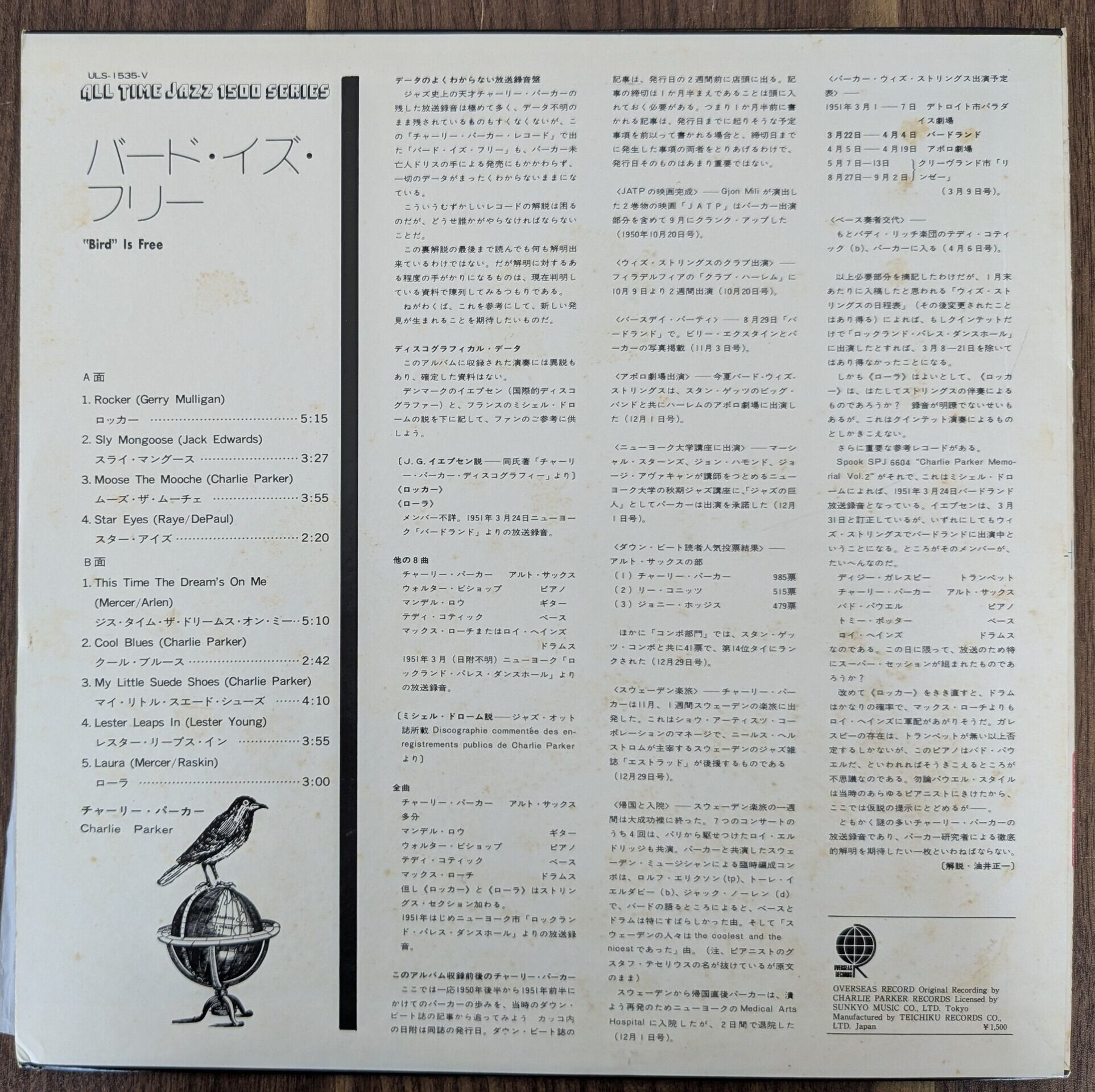 チャーリー・パーカー「バード・イズ・フリー」:LPレコード