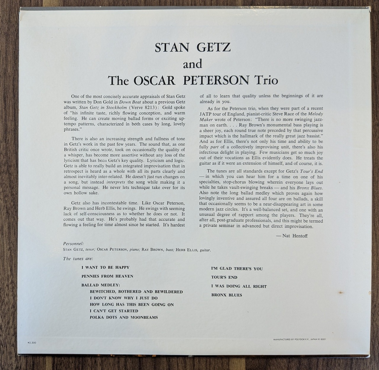 「スタン・ゲッツ・アンド・ジ・オスカー・ピーターソン・トリオ」:LPレコード