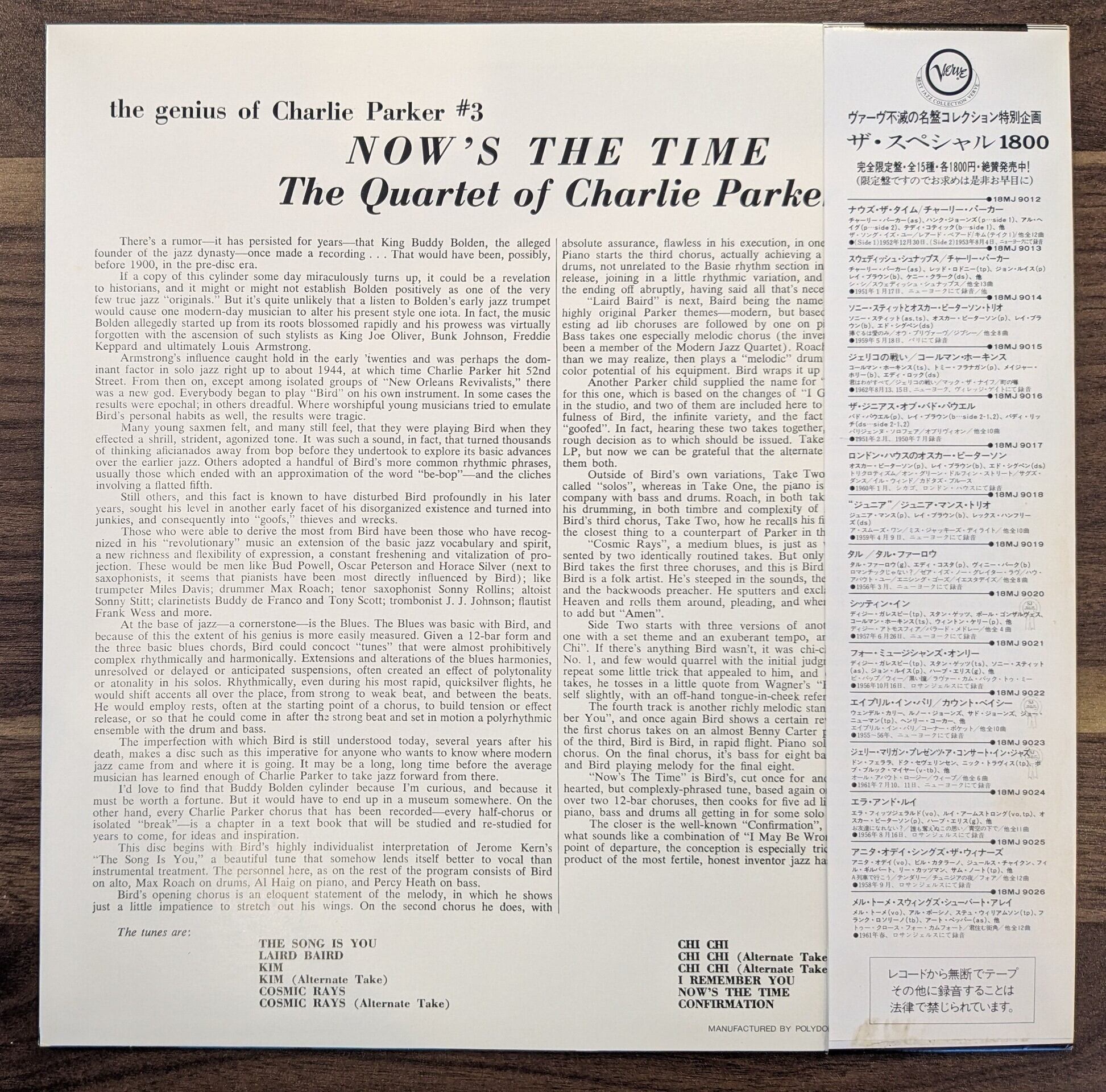 チャーリー・パーカー「ナウズ・ザ・タイム」:LPレコード