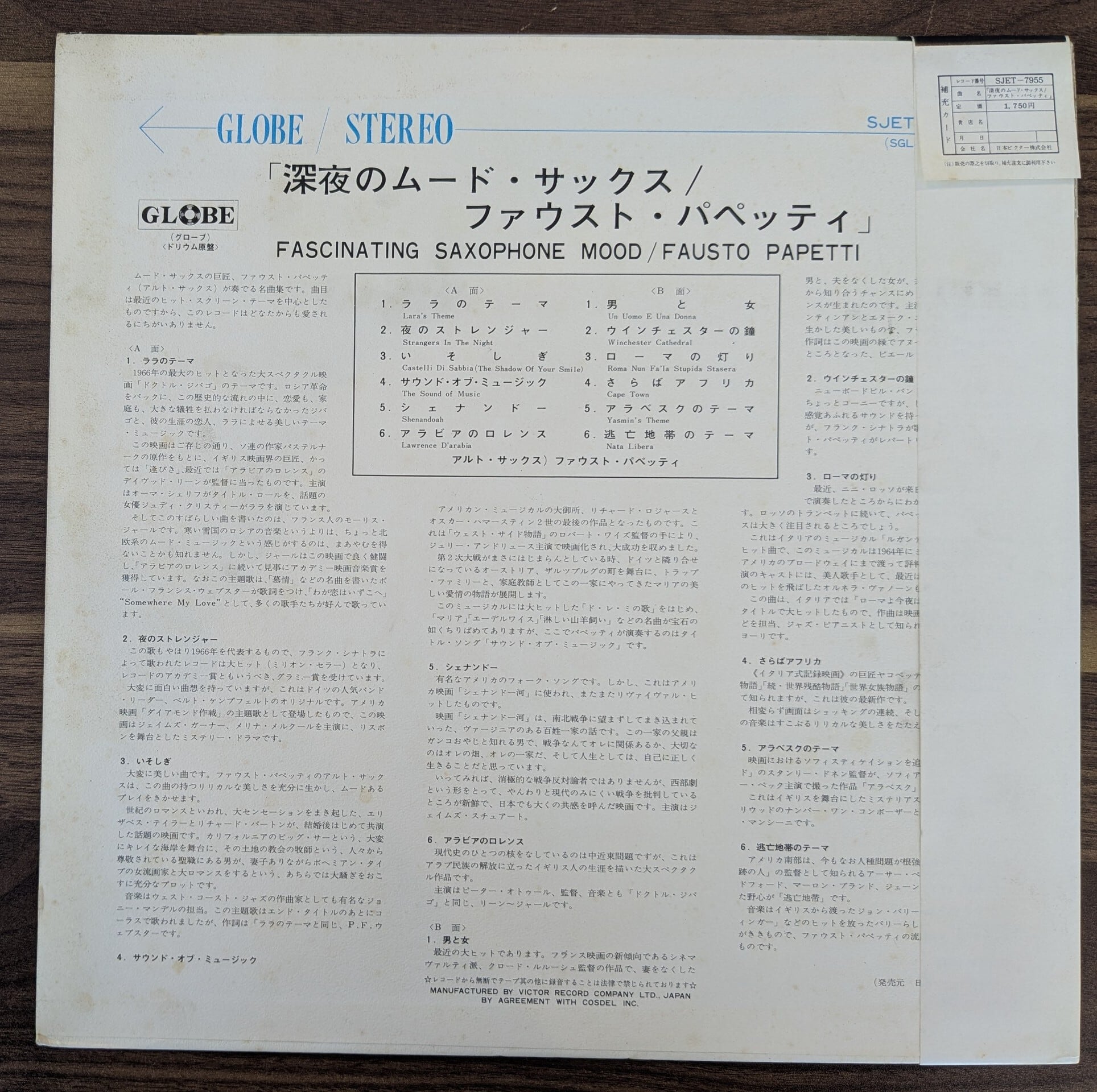 ファウスト・パペッティ「深夜のムード・サックス」:LPレコード