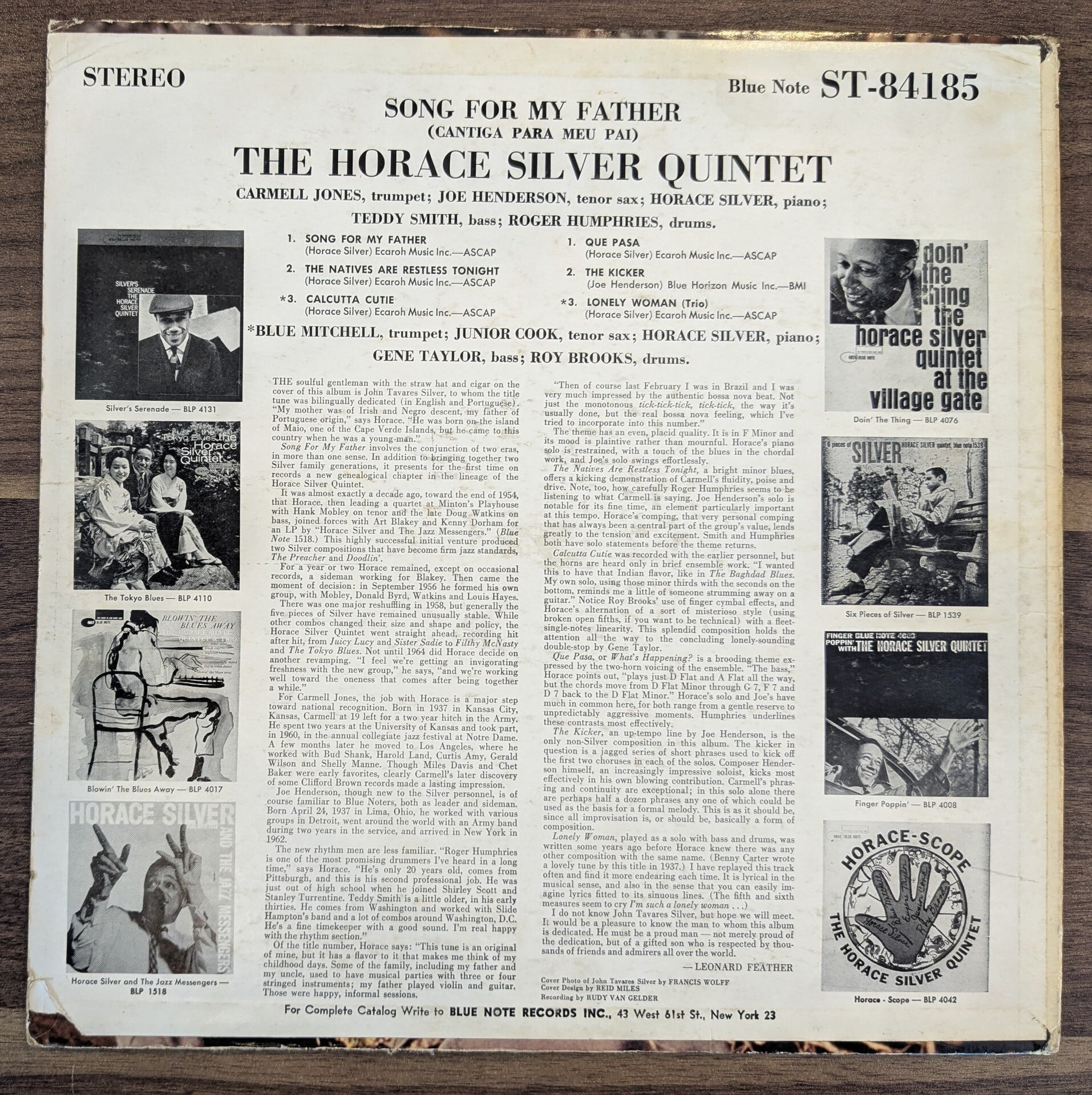 The Horace Silver Quintet「Song For My Father (Cantiga Para Meu Pai)」:LPレコード