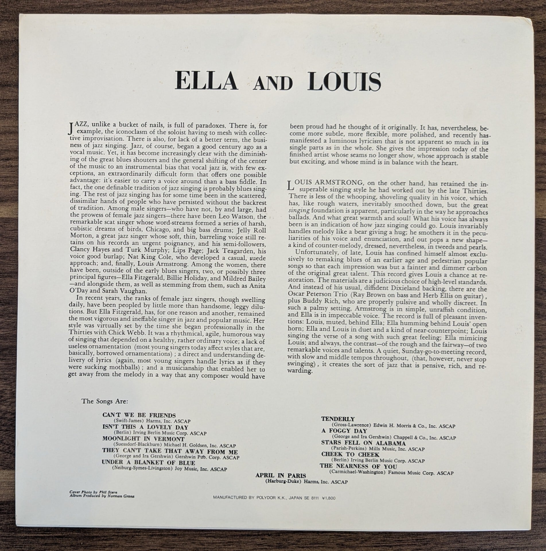 エラ・フィッツジェラルド、ルイ・アームストロング「エラ・アンド・ルイ」:LPレコード