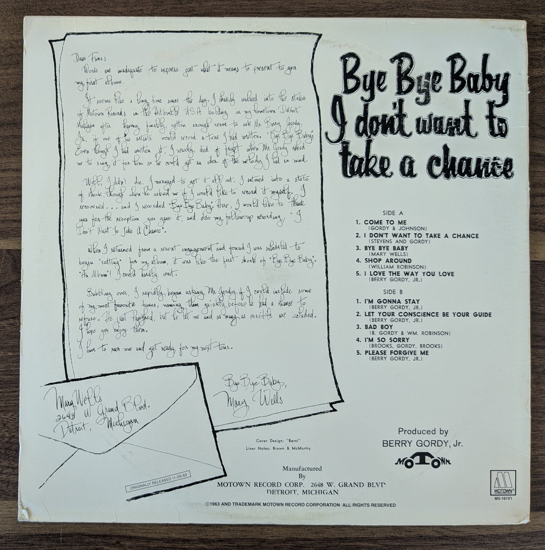 Mary Wells「Bye Bye Baby I Don't Want to Take a Chance」:LPレコード