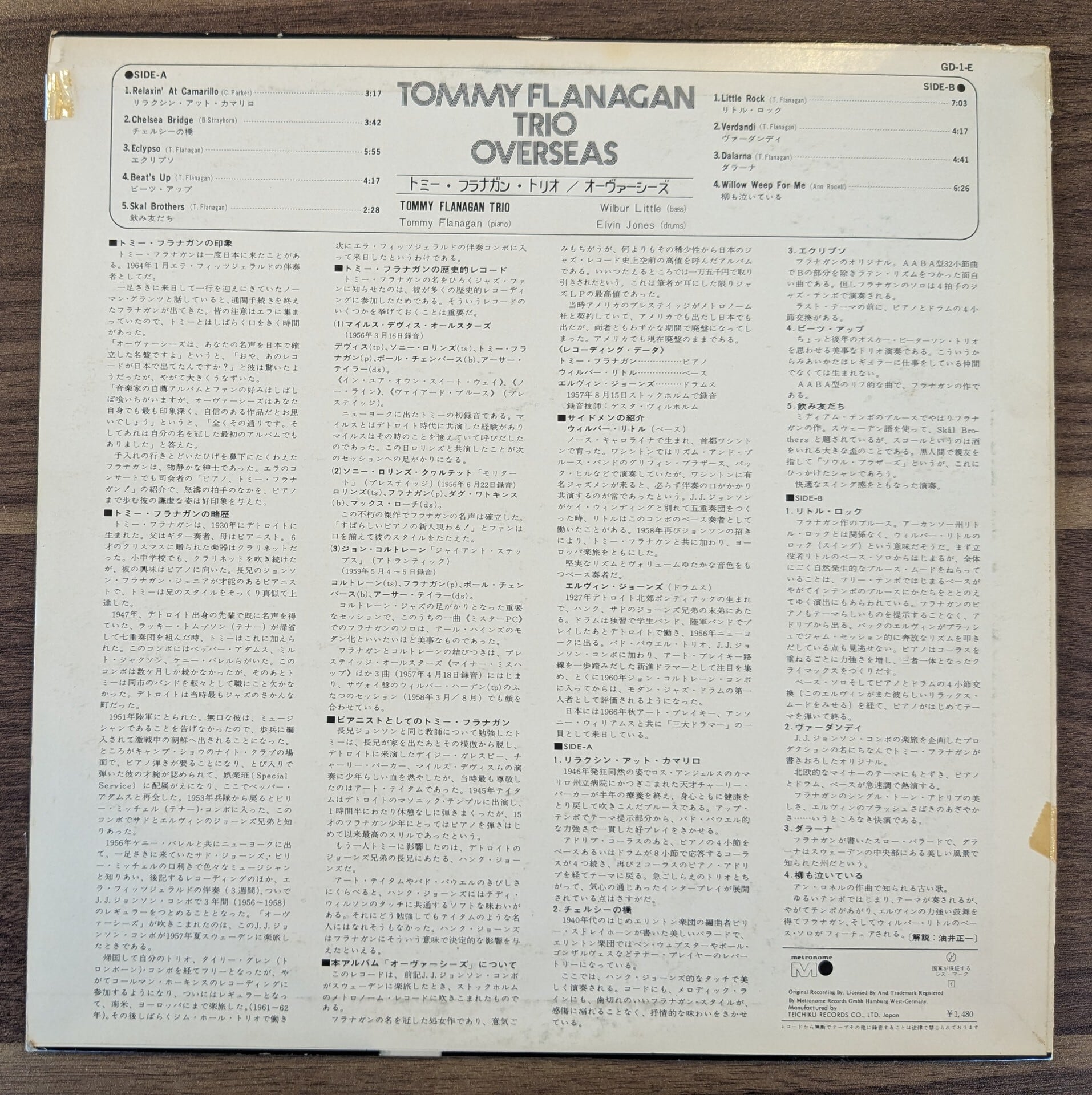 トミー・フラナガン・トリオ「オーヴァーシーズ」:LPレコード