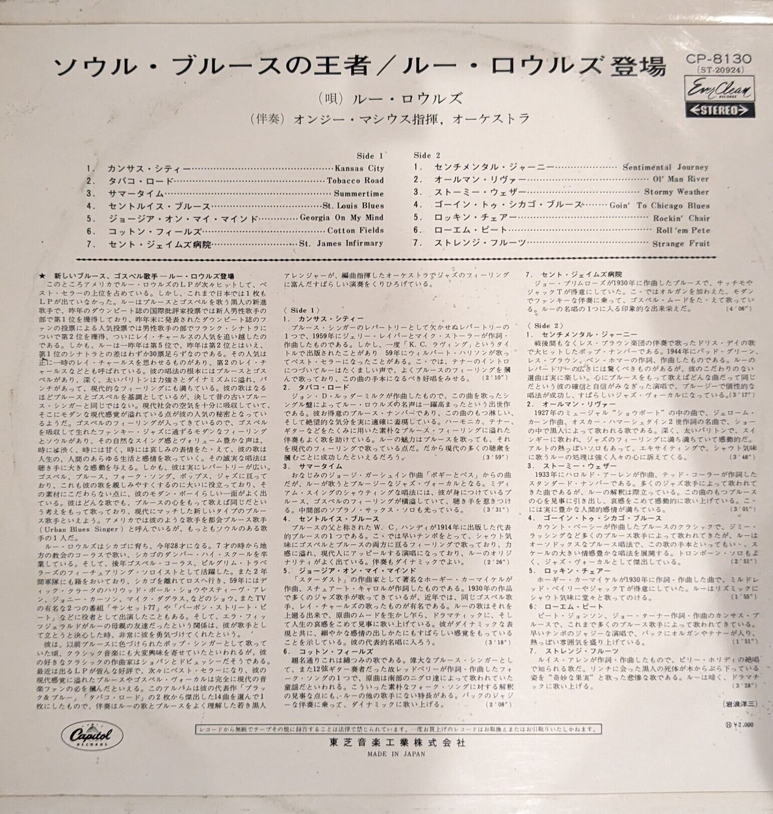 「ソウル・ブルーズの王者 ルー・ロウルズ登場」