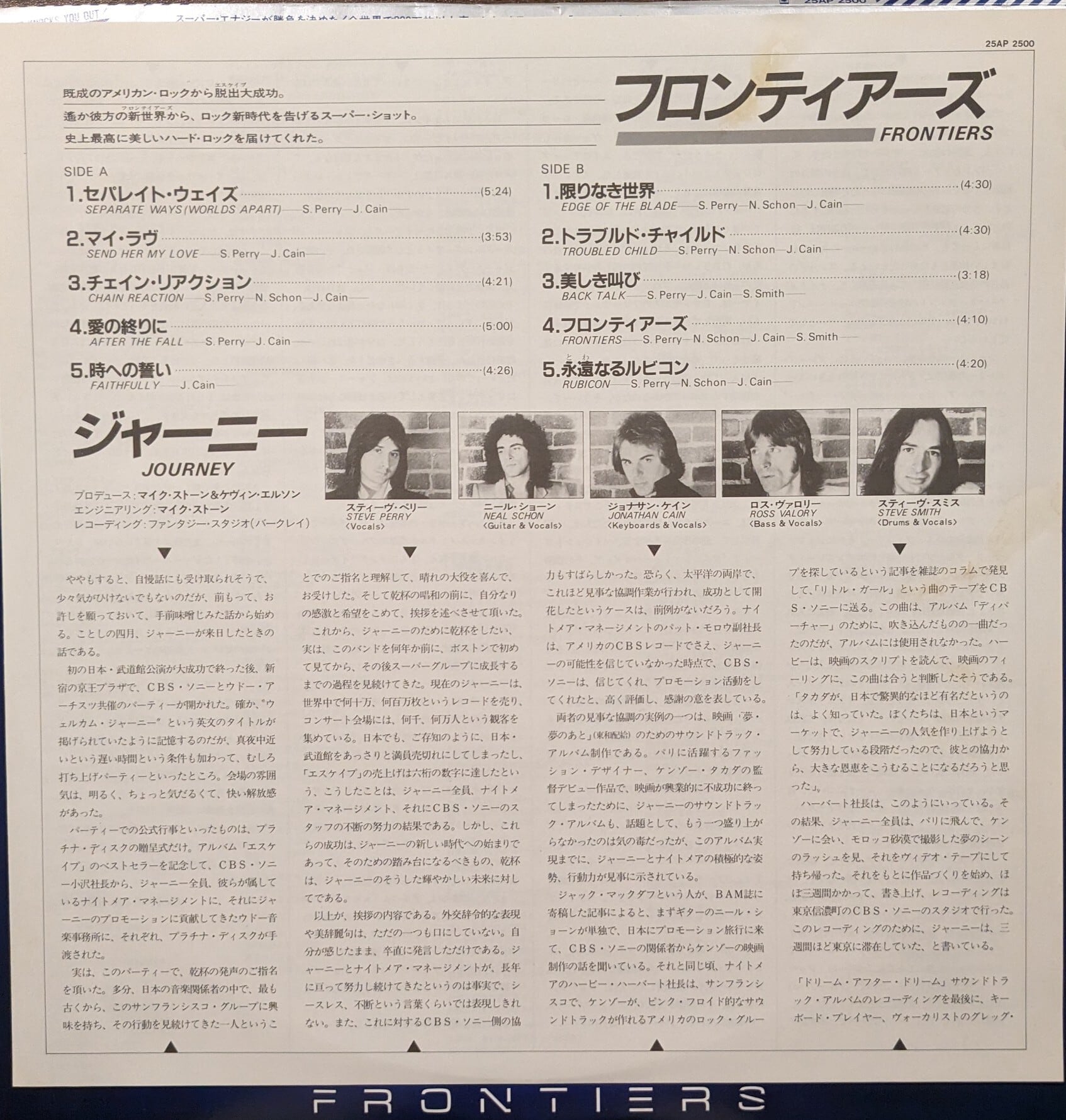 ジャーニー1983「フロンティアーズ」:LPレコード