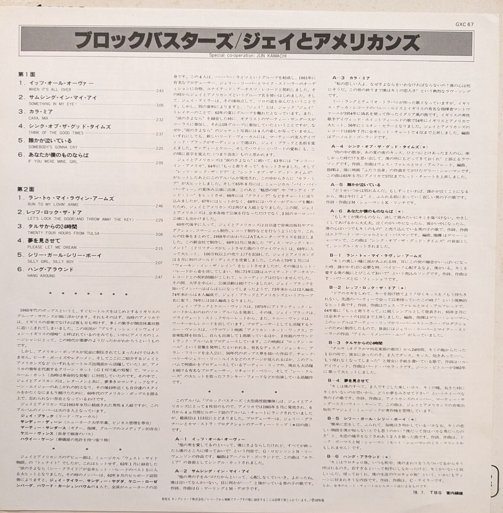 ジェイとアメリカンズ「ブロックバスターズ」:LPレコード