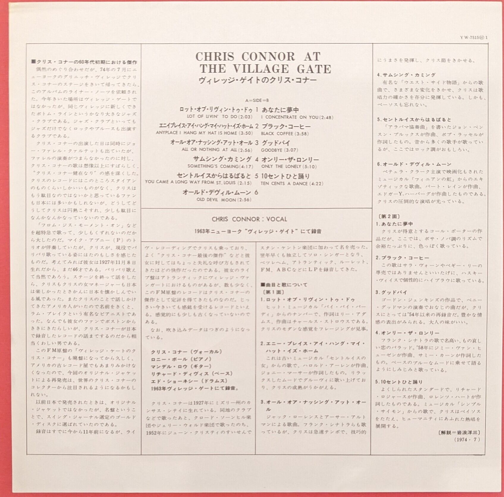 クリス・コナー「ヴィレッジ・ゲイトのクリス・コナー」:LPレコード
