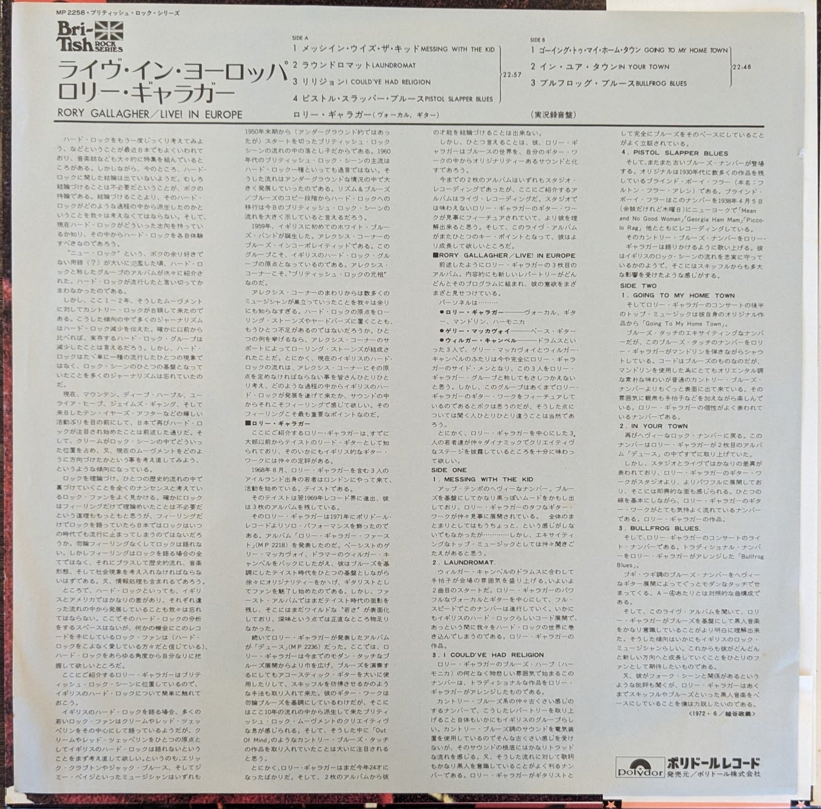 ロリー・ギャラガー「ライヴ・イン・ヨーロッパ」:LPレコード