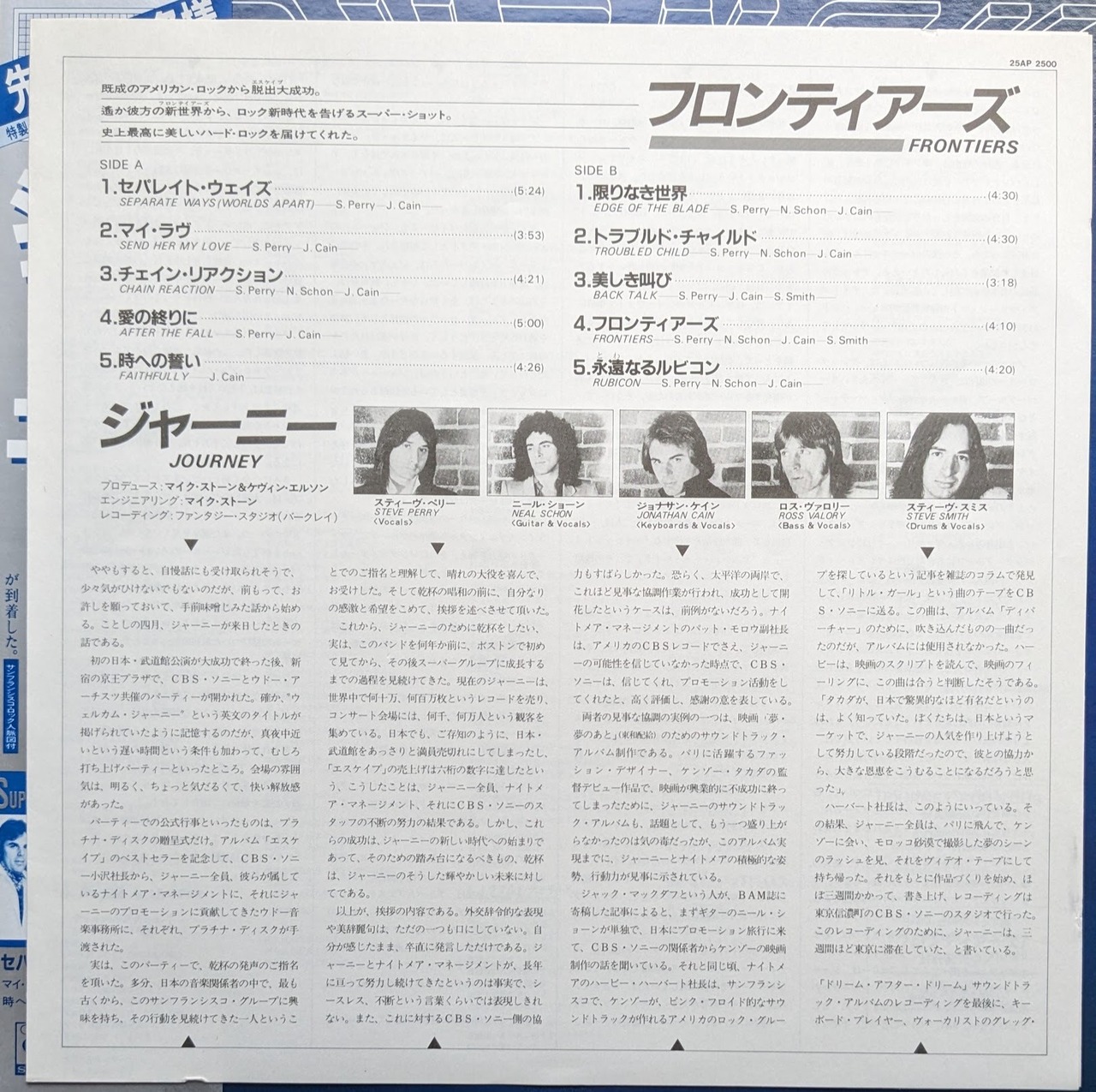 ジャーニー「フロンティアーズ」:LPレコード